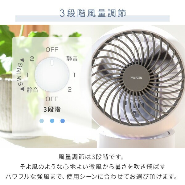 お手入れ簡単 サーキュレーター 10畳 左右自動首振り 風量3段階 静音 YAS-FKW15(WH) 扇風機 エアーサーキュレーター 空気循環 換気 送風 冷風 首ふり 左右首振り 熱中症対策 羽根径15cm 夏物家電 山善 YAMAZEN 【送料無料】