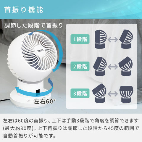 | 商品説明 | ●電源:AC100V(50/60Hz) ●消費電力:14W(50/60Hz) ●電源コード長さ:1.6m ●15cm径 3枚羽根 ●風量:8段階 ●上下左右自動首振り ●手動上下角度調節3段階 ●切タイマー:1-8時間(1時間単位) ●リモコン付 ●お手入れしやすい前面ガード・羽根取り外しタイプ ●適用畳数:~18畳 ●メーカー保証:1年間 |