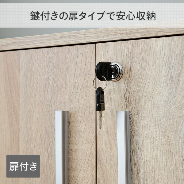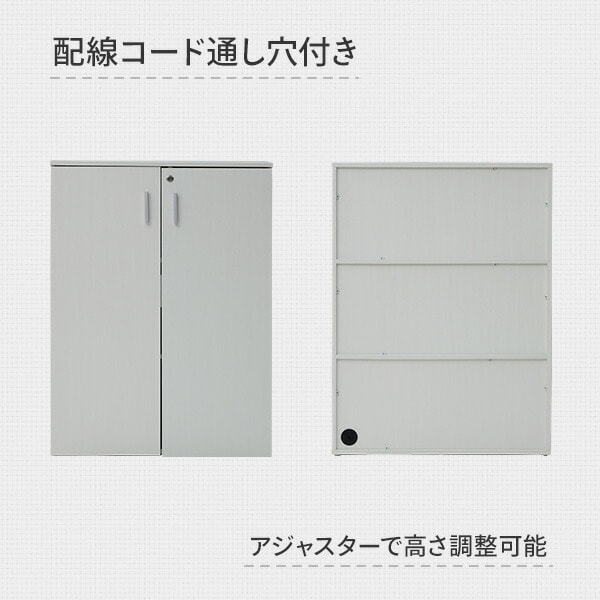 | 商品説明 | ●A4ファイルも収納できる木製シェルフ ●両開きタイプで安心収納 ●配線コード通し穴付き ●設置場所に合わせてアジャスターで高さの微調整可能 ●収納内寸:幅76.5 奥行33 高さ34cm ●耐荷重:天板 棚板各25kg、全体耐荷重75kg ※組立てにはプラスドライバー、マイナスドライバーが必要です。ご用意お願いいたします。 |