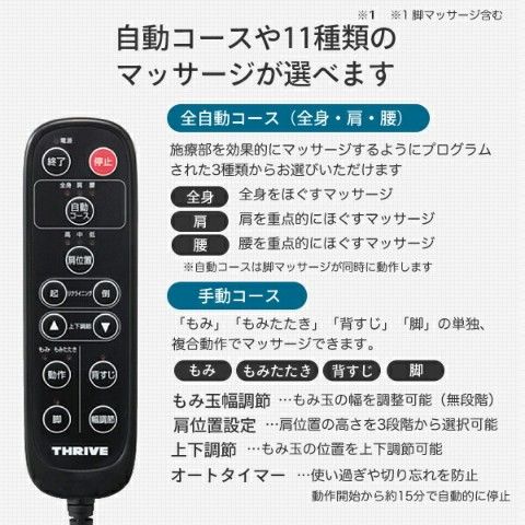 | 商品説明 | ●医療機器認証番号:229AKBZX00039000 ●医療機器の種類:管理医療機器 ●電源:AC100V(50/60Hz) ●定格時間:20分 ●オートタイマー:約15分 ●肩位地調整:3段階 ●もみ玉幅調整:無段階 ●もみ回数:約27回/分 ●たたき回数:約540回/分 ●脚もみマッサージ:約10回/分 ●背もたれ角度:約110-約138° ●電源コード長さ:約2m ●張地:合皮 ●付属品:ヘッドレスト ●メーカー保証:1年間 |