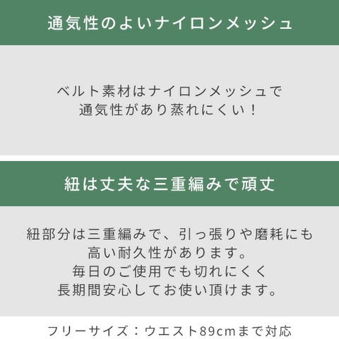 | 本体サイズ | フリーサイズ(ウエスト89cmまで対応) |