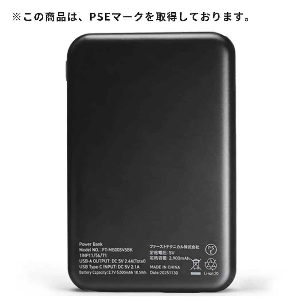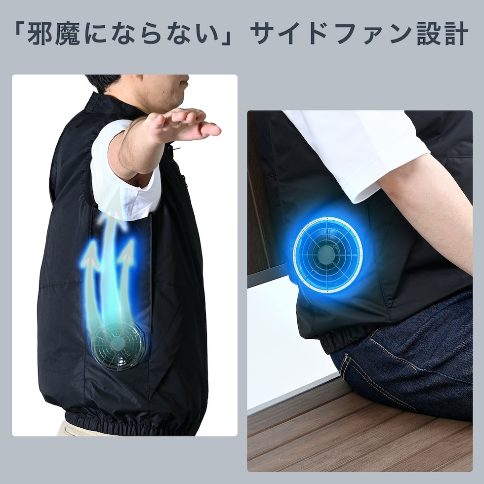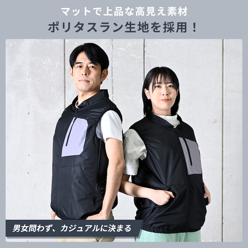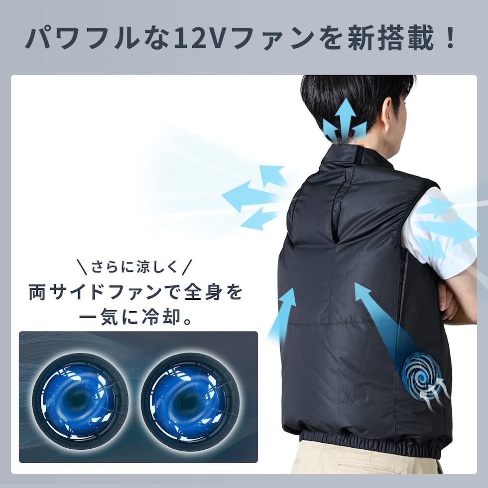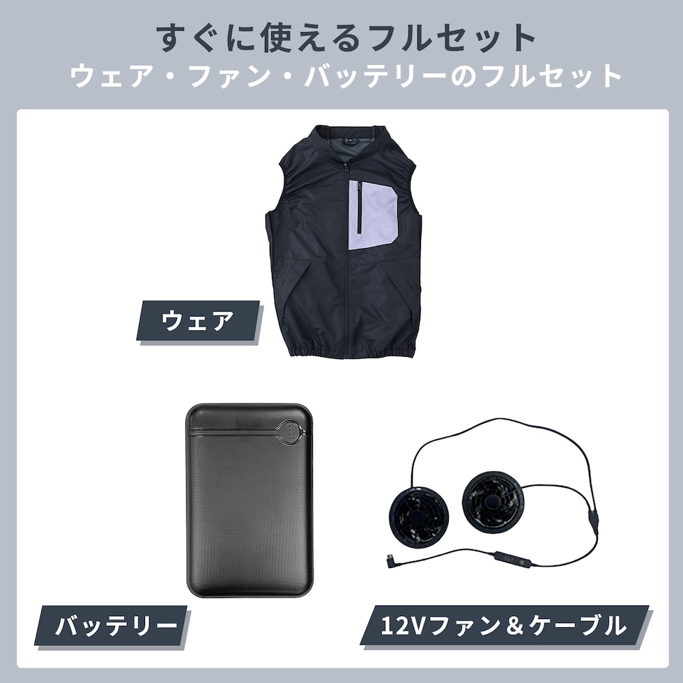 | 商品説明 | ●買ってすぐに使えるベストとファン、バッテリーのフルセット ●26年モデルは、12Vファンで大風量 ●生地にはポリタスランを採用しマットで上品な質感 ●ブラック×グレー色で男女問わず着用可能 ●風量3段切り替え可能。お好みの風量に調節可能です ●ウェア横にファンがあるから座りながらでも使用可能。運転しながらでも使用可能 ●保冷剤をウェアに装着可能!空調ウェア×保冷剤で冷却力アップ! ●保冷剤用メッシュポケット:2箇所 ●取り込んだ空気を冷やすことで暑い夏場をより快適に過ごすことができます ※200g以上の保冷剤は使用できません ※保冷剤想定サイズ:約10cm×16cm ●電池使用時間(運転時間):(強)約1時間45分、(中)約2時間20分、(弱)約3時間40分 ※着用条件など諸条件により、稼働時間が異なる場合がございます ●紫外線防止加工:裏地にACグレーコーティングを施し、UVカット90%以上を実現。日焼けが気になる方に最適です ●ファンは、前ガードを取り外して掃除ができます ●大型ファン:外径 約100mm、厚み約38mm ●ジャンパーの服穴径:90mm 《バッテリー》 ●型式番号:FT-MB006P5BK ●電池電圧:12V ●電池容量:5000mAh ●モバイルバッテリー搭載 ●出力ポート:USB-A×2/USB Type-C×1 ●入力ポート:USB Type-C ●定格入力:Type-C PD 5V 3A/9V 2A/12 1.5A ●USB-A to USB Type-Cケーブル50cm、取り扱い説明書 ●充電時間目安 ・付属充電ケーブル+USB ACアダプタ(5V2A出力)・・・約3時間半 ・付属充電ケーブル+USB ACアダプタ(5V1A出力)・・・約5時間 ●LEDランプの点灯でバッテリーの残量が確認できます ●セット内容:専用ウェア×1着、5000mAhモバイルバッテリー×1個、12V大ファン(ブラック)×2個、充電用USBケーブル×1台、USBスイッチケーブル×1個 ※ACアダプターは付属していません。市販のUSB端子供給のACアダプターで充電を行ってください。 ●作業現場、建設現場、工場、ガーデニング、アウトドア、配送作業など様々なシーンで活躍するファン付きウェア ※2026年2月よりウェアのデザイン・素材、バッテリー、ファンの仕様に変更がございます。 |