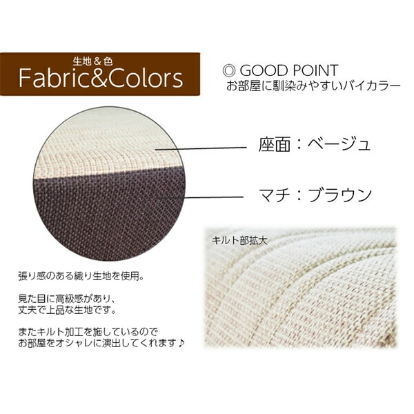 | 材質 | 側地=ポリエステル85%、綿10%、その他5% 中材=ウレタンフォーム |