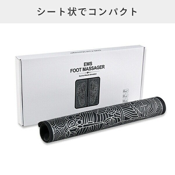 | 商品説明 | ●コンパクトに収納できるシート状マッサージャー ●ふくらはぎ、太もものシェイプアップに ●座りながらエクササイズ ●6種類のモード ●9段階の強度調整 ●電源:USB充電式 ●充電時間:1.5時間 ●連続使用時間:15分 ●満充電状態の最長使用時間:2時間 |