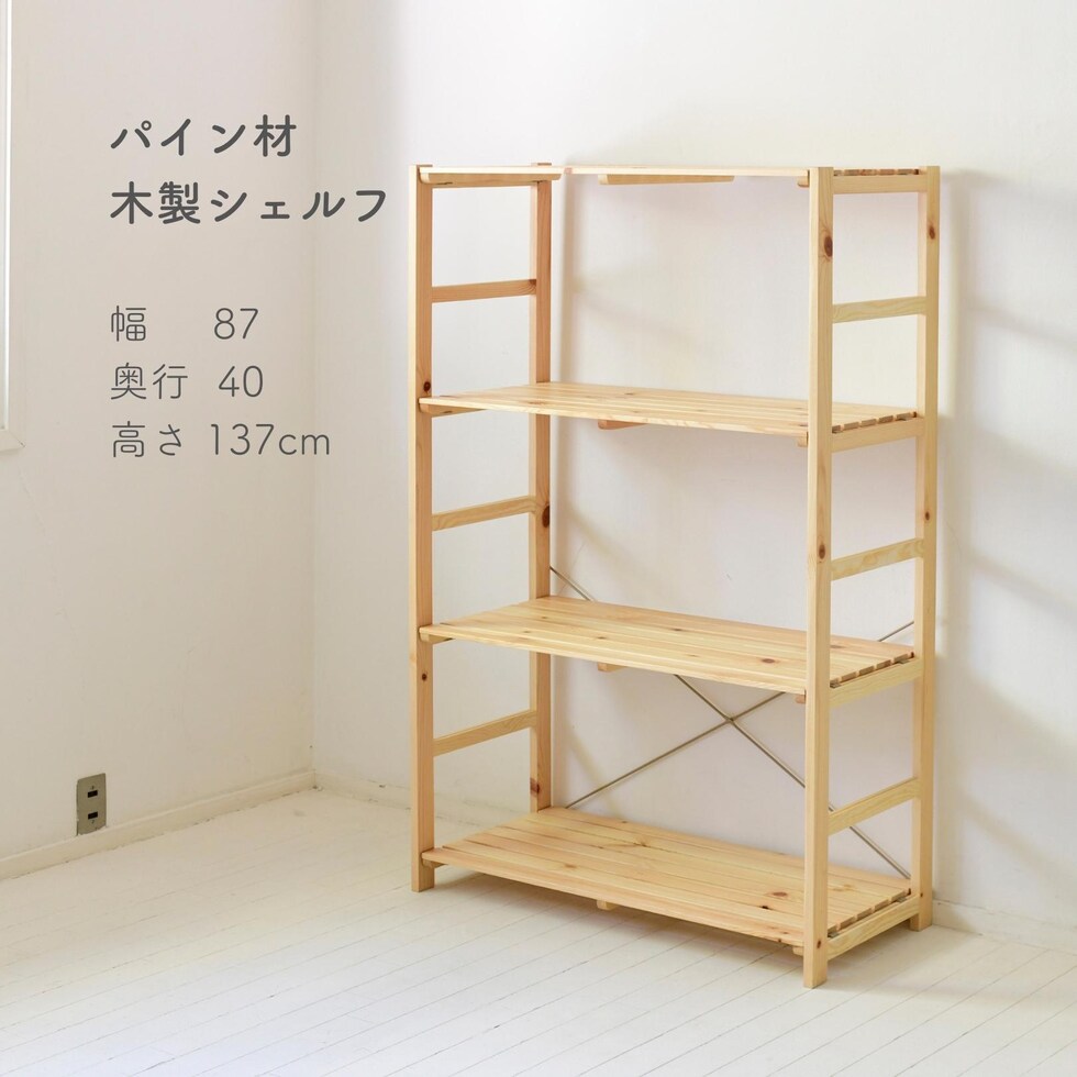 パイン材 シェルフ ウッドラック 幅87 奥行40 高さ137cm 収納 ラック 棚 キッチン 洗面所 リビング 子供部屋 一人暮らし ナチュラルインテリア 北欧ナチュラル 山善