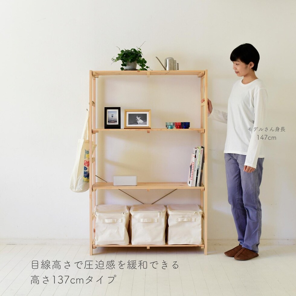 パイン材 シェルフ ウッドラック 幅87 奥行40 高さ137cm 収納 ラック 棚 キッチン 洗面所 リビング 子供部屋 一人暮らし ナチュラルインテリア 北欧ナチュラル 山善のレビュー