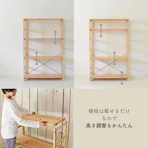 ●棚板は載せるだけの構造で、高さ調整も簡単