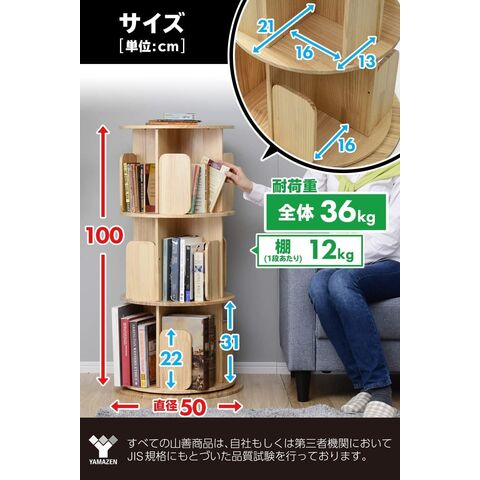 本棚 回転式 木製 3段 直径50 高さ100cm 360度回転 絵本棚 天板に物が置ける A4が入る高さ 天然木 漫画 小さい本棚 ブックシェルフ 組立品 山善 YAMAZEN 【送料無料】