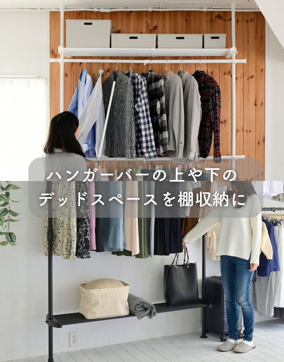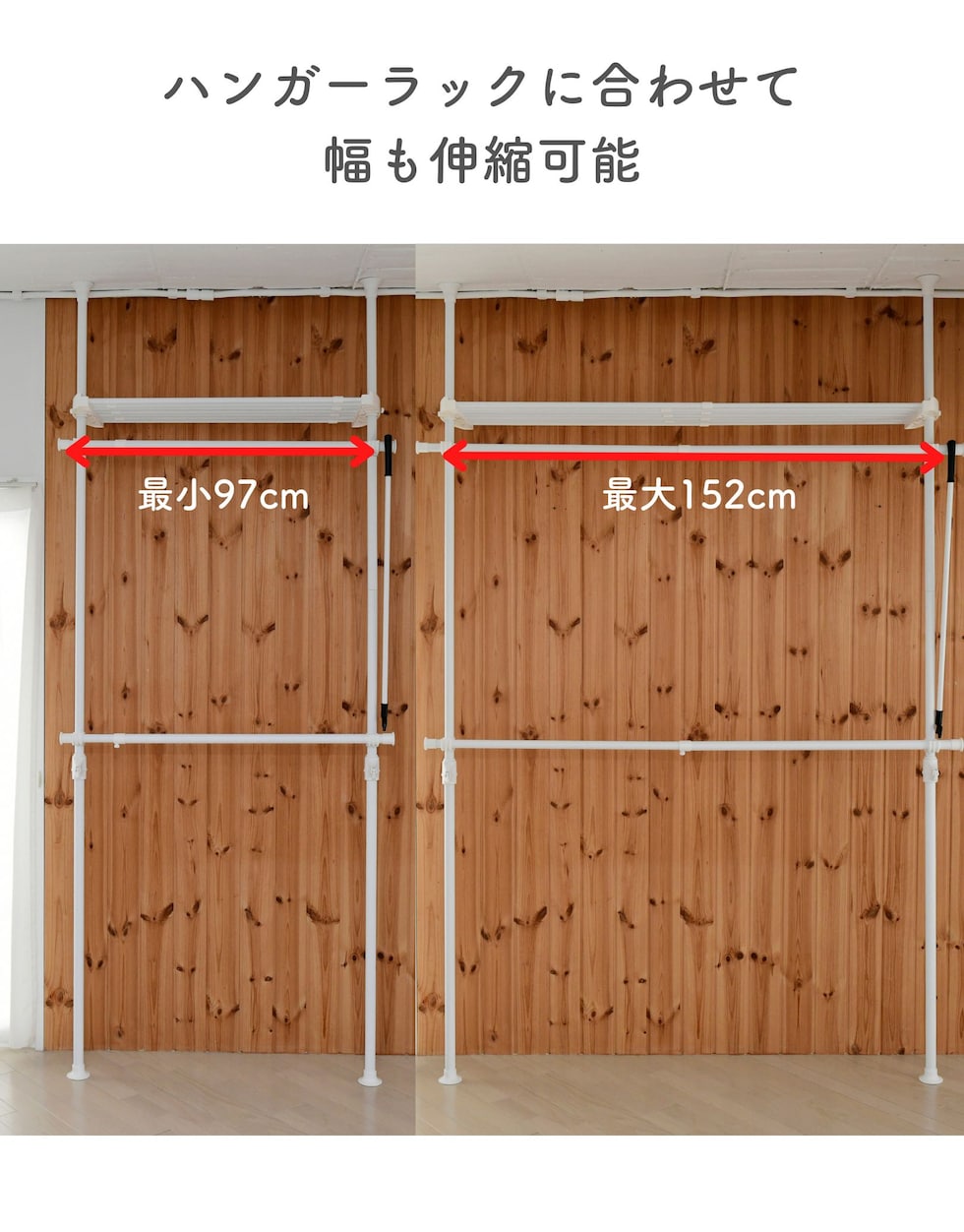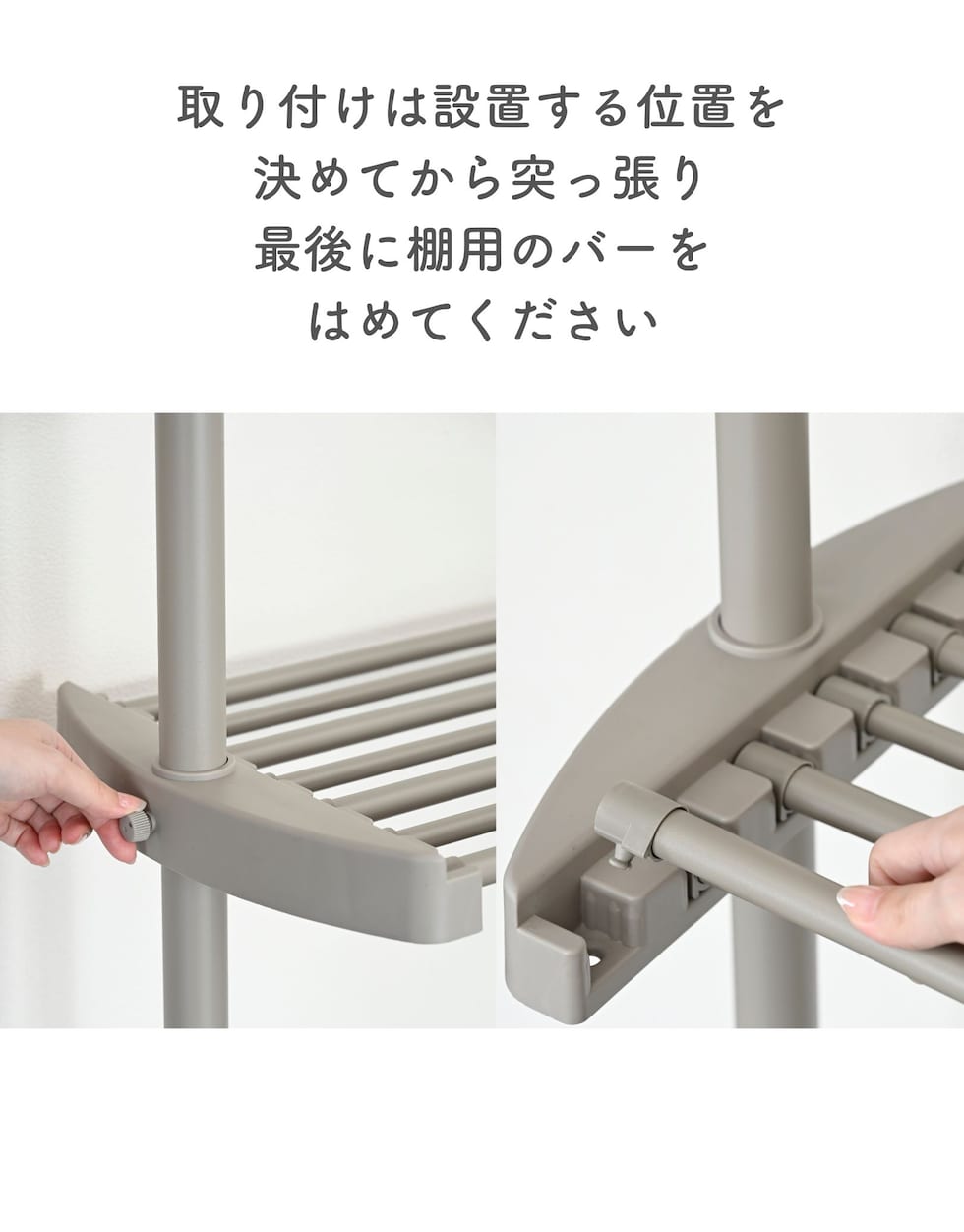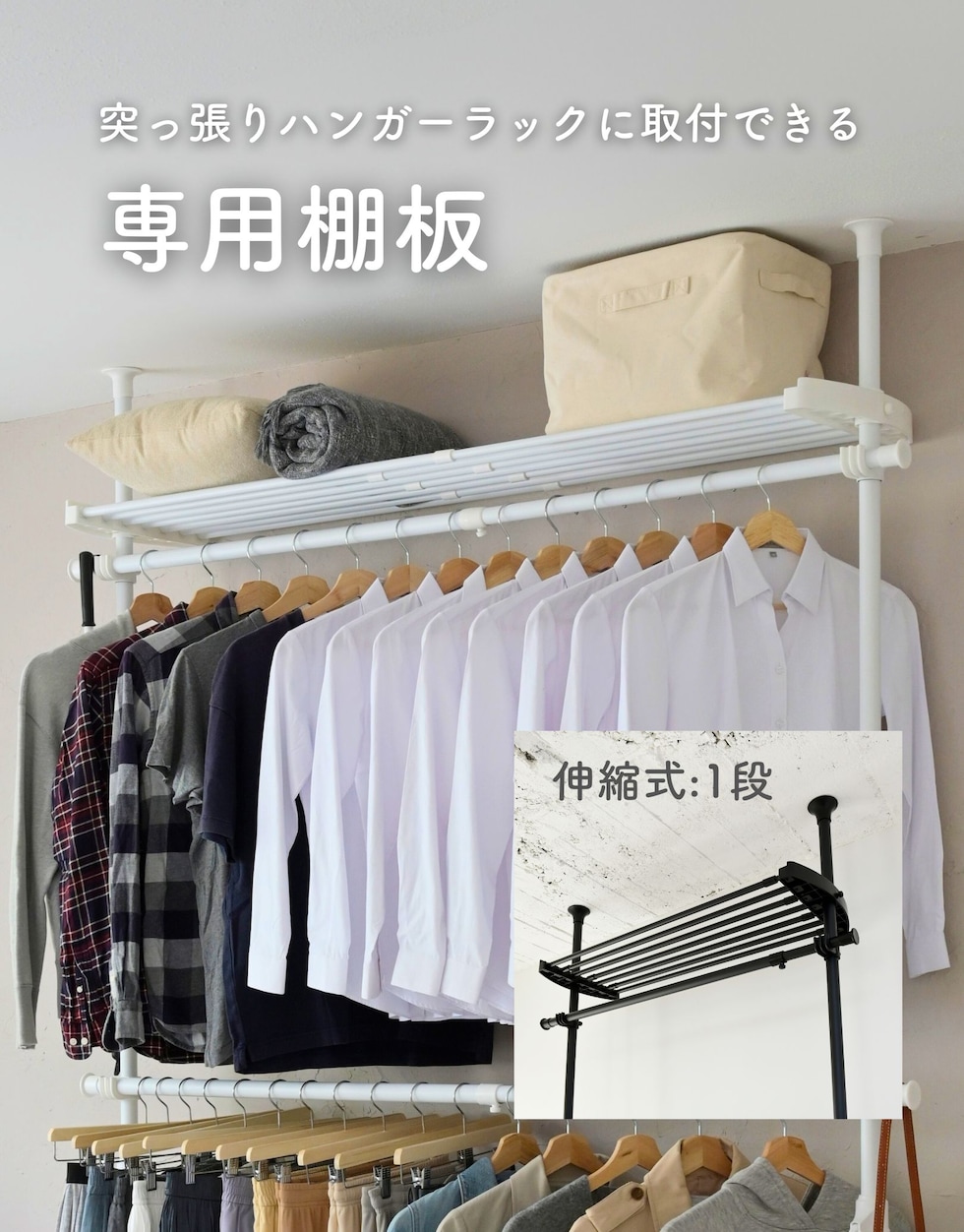 | 商品説明 | ※2025年6月27日よりグレージュ色が追加となります。 ※こちらの商品は棚1枚のみとなり、突っ張りハンガーラックは別売りです ●突っ張りハンガーラックに追加できる伸縮可能の専用取付け棚 ●突っ張りハンガーラックのデッドスペースを活用して無駄なく収納 ●支柱の太さが違う上部、下部どちらでも設置可能(アダプタ付き) ●棚部分の内寸:幅85-139 奥行30cm ●耐荷重:10kg ●工具要らずの簡単組立て式 ●市販の収納ボックスもちょうどいいサイズ設計 ●設置対応ラック:WJZ-775、WJ-775M、WJ-795M、WJT-795M ※後付けの場合、一度、本体を外す必要があります。 ※商品によって適応可能サイズに制限がございます。詳しくは当ページのサイズ案内画像をご確認お願いいたします。 |