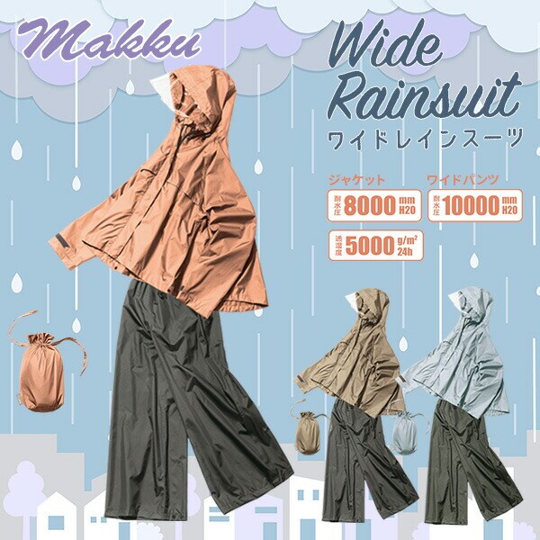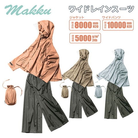 ワイドレインスーツ AS-620 レインスーツ 雨具 カッパ レインウエア 上下セット セットアップ 2wayスタイルパンツ コンパクト収納 巾着ポーチ 防水 撥水 軽量 レディース 婦人用 女性用 マック Makku 【送料無料】