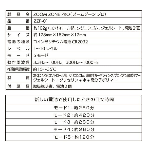 | 本体サイズ | 約幅17.8×奥行16.2×高さ1.7cm 重量102g(コントロール部、シリコンゴム、ジェルシート、電池2個) |