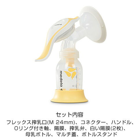 商品説明 ●セット内容:フレックス搾乳口(M 24mm)、コネクター、ハンドル、Oリング付き軸、隔膜、搾乳弁、白い隔膜(2枚)、母乳ボトル、マルチ蓋、ボトルスタンド