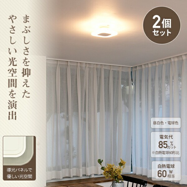 | 商品説明 | ●お得な2個セット ●導光パネルでまぶしさを抑えた優しい光空間を演出 ●色調:電球色、昼白色 ●器具光束:810lm ●消費電力:8W ●色温度:5000K ●演色性:Ra80以上 ●消費電力:8W ●電気代:約77%カット ※白熱電球:40型(36W)比 ●白熱電球:60W相当 ●光の乱反射を利用してまぶしさ低減 ●導光パネルの側面のLED光源から出た光が乱反射して、均一に発光しているように見えます ●まぶしさを感じにくい優しい光の発光を実現 ●明るさも十分 ●直射照度は一般の天井照明よりは落ちますが、読み物をするにも問題ない明るさを確保 ●四角いフォルムにすることで、面積が広くなり、丸型よりもより光が広がる形状へ ●常夜灯モード ●就寝時に便利な常夜灯モードの搭載 ●天井から広がる光で明るくきれいな空間を演出 ●様々なシーンに馴染みやすいインテリアデザイン ●家中でご活用頂けます ・人を迎え入れる玄関に ・リラックスしたいトイレに ・おしゃれな雰囲気にしたい玄関に ・お気に入りの服を選びやすくウォークインクローゼットに ●取り付けについて ・ご家族の引っ掛けシーリングに爪を引っ掛けて回すだけで簡単に取り付けできる ・角型引掛シーリングをサポートする補助カバーも同梱 ●天井取付部分は約90度回転可能 ●取付後、お好きな角度に回転して調整が可能 |