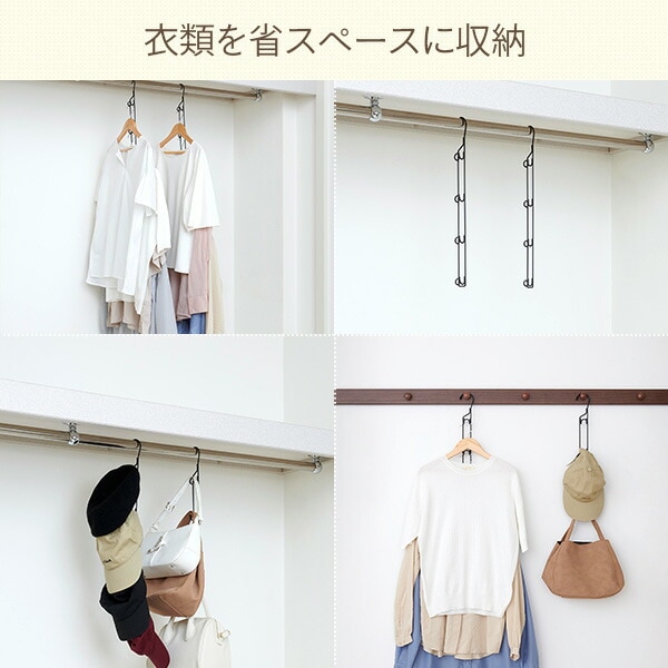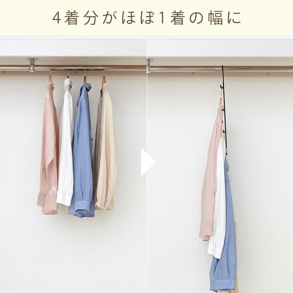 | 商品説明 | ●衣類を省スペースに収納 ●1個につき4着掛けられる ●壁掛け収納にも使えます |