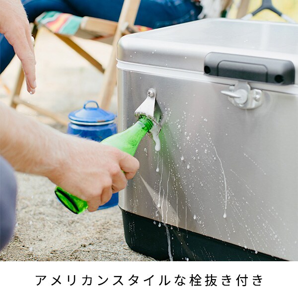 | 商品説明 | ●ステンレスを採用し錆びに強く耐久性も兼ね備えたクーラーボックス ●容量:51L(350ml缶 85本) |