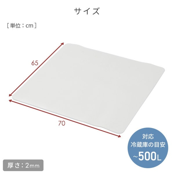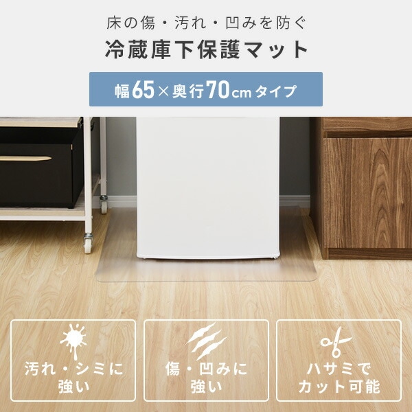 | 商品説明 | ●床のキズや汚れを防ぐ冷蔵庫下保護マット ●PVC素材だから汚れやシミに強く、熱にも強い ●ハサミでカット可能 ●汚れを残したくない賃貸住まいの人にオススメ |
