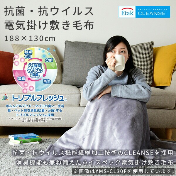 抗菌・抗ウイルス 電気毛布 掛敷毛布 188×130cm YMK-CL40F 電気掛け毛布 電気掛毛布 電気敷き毛布 電気敷毛布 電気ブランケット 電気ひざ掛け毛布 ダブルサイズ フランネル 山善 YAMAZEN 【送料無料】