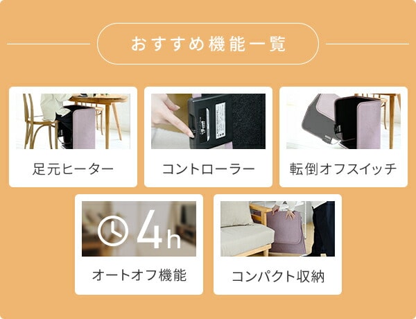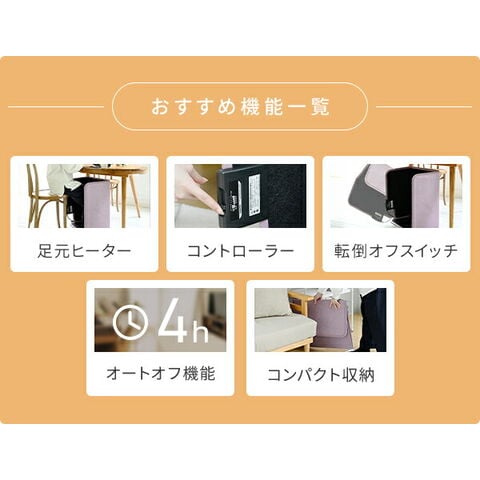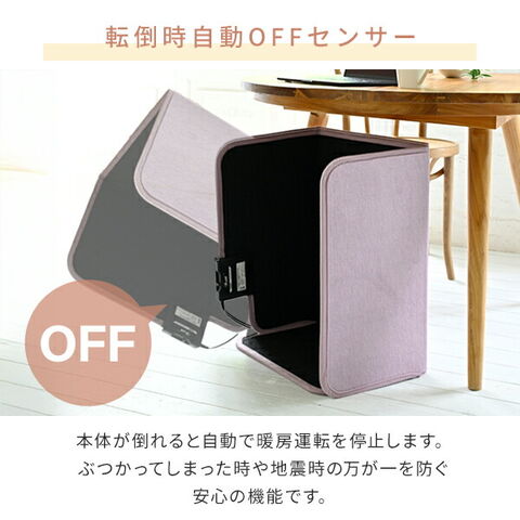 | 商品説明 | ●コンパクトに折り畳める4面パネルヒーター ●電源:AC100V (50Hz/60Hz) ●消費電力:160W ●コード長さ:1.5m ●消費電力量:約155Wh ●電気代(1時間あたり):約4.8円 ※電力料金目安単価31円/kWh(税込)で算出 ●転倒防止センサー搭載 ●切り忘れ防止タイマー機能 ●最大表面温度:約45度 ●メーカー保証1年付き ※こちらの商品は2025年9月に仕様変更をしております ・型番:YPPS-1551→YPHS-160 ・転倒防止センサー追加 ・切忘れ防止タイマー追加 ・ひざ掛け毛布→付属なし ・カラー:グレー→ピンク |