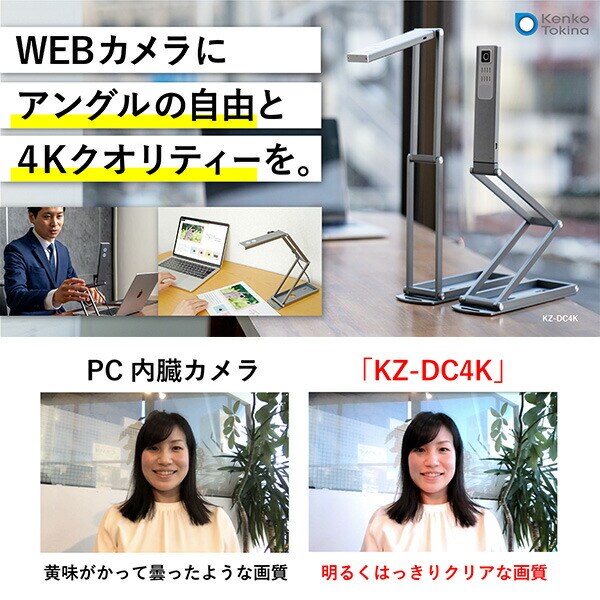 4KWEBカメラ 高画質WEBカメラ オンライン用ウェブカメラ KZ-DC4K シルバー PC用マルチアングル4Kカメラ オンライン WEB ウェブ ミーティング リモート 折りたたみ収納 オートフォーカス ケンコー KENKO 【送料無料】