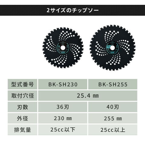 チップソー 刈払機 草刈機専用 2枚組 外径230mm×36枚刃 255mm×40枚 取付穴25.4mm JIS規格 万能型 雑木 雑草 荒地 BK-SH230 BK-SH255 替え刃 替刃 草刈り機 芝刈り機 刈払い機 刈払機 山善 YAMAZEN 【送料無料】
