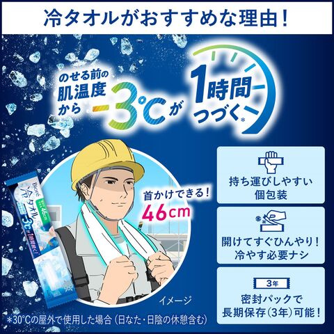 | 商品説明 | ●開けてすぐひんやり!冷やす必要ナシ ●首かけできる46cm ●ウォーキングやレジャー、スポーツ観戦など夏の屋外でもひんやり快適 ●ヒアルロン酸配合 ●持ち運びに嬉しい個包装 |