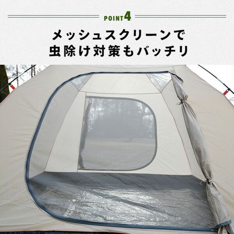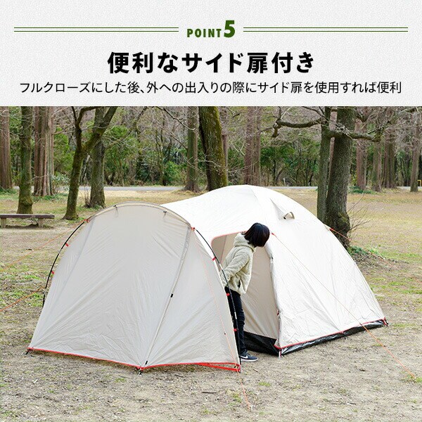商品説明 ●広い前室と快適な居住空間を持つ4-5人用テント