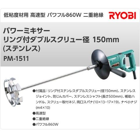 | リョービ(RYOBI) パワーミキサー リング付ダブルスクリュー径 150mm (ステンレス) PM-1511 |