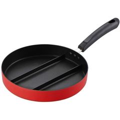 | 商品説明 | ●焼き場所が3つあるフライパン!真ん中は卵1個で玉子焼きを作るのに適した幅 ●朝の忙しい時間でも、同時に3種類のおかずが作れます ●別々の調理をしても洗う手間が1回で済みます ●仕切りの高さが、1.5cmなので、汁物が隣に移りにくい ●同時に調理することで時短もでき、省エネで経済的 ●底の厚さ:4.0mm ※本品は2016年4月1日に仕様変更しています 【リニューアル内容】 韓国製から中国製に変更しております |