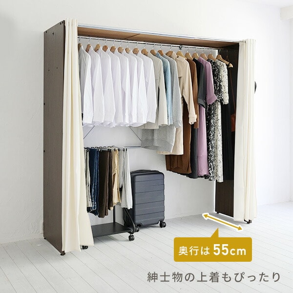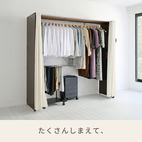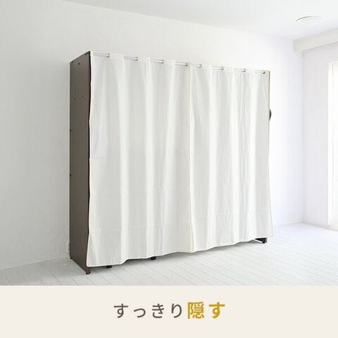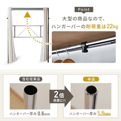 | 商品説明 | ●たくさんしまえて、すっきり隠す 透けないカーテンの 大容量ハンガーラック ●当社通常品より2倍厚い、肉厚1.2mmパイプを使ったしっかり構造のハンガーバーを採用 ●しっかりしてシンプルな、生成りのカーテン式のカバー付きで服を隠してお部屋すっきり ●128cmから、最大で200cmまで伸縮する大容量タイプ ●内寸でも172cmの高さ設計で、コートやワンピースなどの長尺衣類もまとめて収納可能 ●サイドフック4個付属、外側・内側どちらにも設置でき、デッドスペースを活かしてちょい掛けも可能 ●ハンガー内寸幅:124-196cm ●床からハンガーまでの高さ:172.5cm ●サイドフック内寸幅:3.5(床からの高さ:143.5)cm ●(耐荷重)全体:30kg、ハンガーバー:22kg、フック部:1個あたり2kg ●当店で人気の収納アイテムを組み合わせると、服の下もしっかり収納空間として活用可能 ※大型品のため、お二人以上での組み立てを推奨しております。 ※2018年1月1日より、ハンガーバー・カーテン・パネルの仕様を見直した改良モデルでの販売となります。2018年6月4日より、ホワイト色を追加しました。 ※2023年8月入荷分より、カーテンの仕様が変更となります。 |