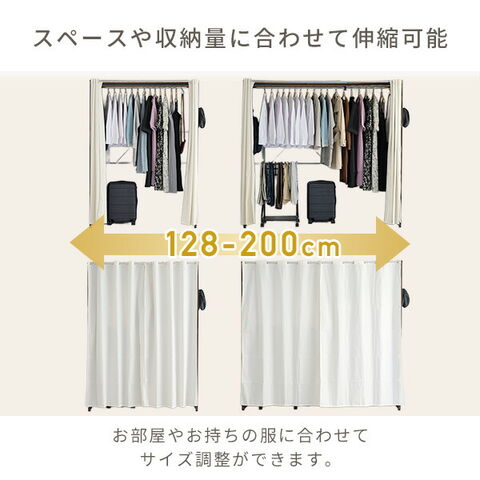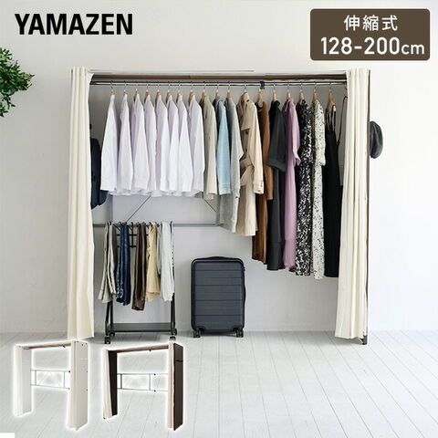 ハンガーラック カバー付き 伸縮式 幅128-200 奥行55 高さ180cm おしゃれ 洋服 服 収納 クローゼット クローゼット収納 ワードローブ コート ワンピース 大容量 大型 隠す収納 白 木製 山善 YAMAZEN 【送料無料】