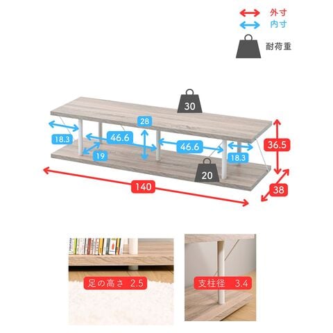 ●耐荷重:天板約30kg、底板20kg、全体耐荷重50kg