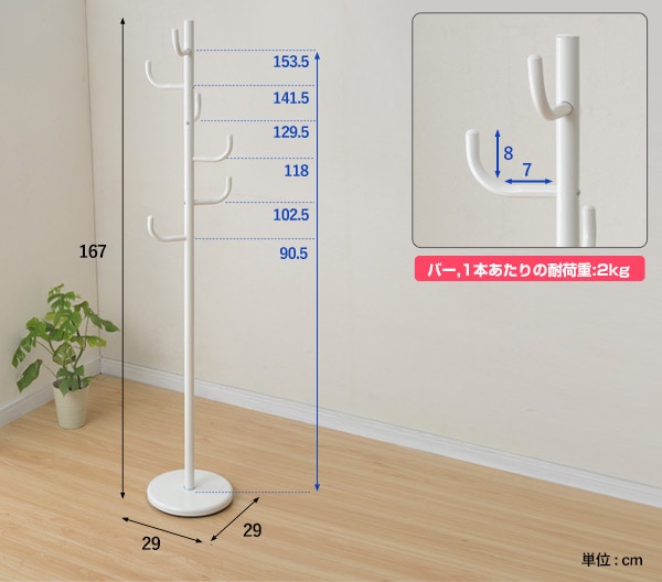 | 本体サイズ | 幅29×奥行29×高さ167cm 重量4.5kg |