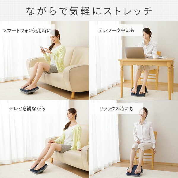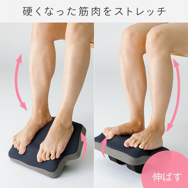 | 商品説明 | ●耐荷重:70kg ●巣ごもり生活による運動不足の解消に!筋肉の衰えや硬くなった関節によるつまづき、転倒予防に! ●座ったままで「指つかみ」「ストレッチ」による足の悩みをサポートする足置き ●運動が苦手な方も座ったままでテレビを見ながら簡単、安全 ●運動不足や疲れたふくらはぎ・前すね・足首の筋肉を伸ばし柔軟性をもたせる ●足指で先端をつかみ指や足裏の筋肉に刺激を与え、踏ん張る力・バランス力を高め筋力を鍛える。転倒予防・スリ足防止に ●ウレタンフォームを使用し土踏まず部分を押し上げる ●テレワークをしながら運動不足の解消と足のリフレッシュできる ●ストレッチで筋肉を伸ばすことで足の悩みをサポート |