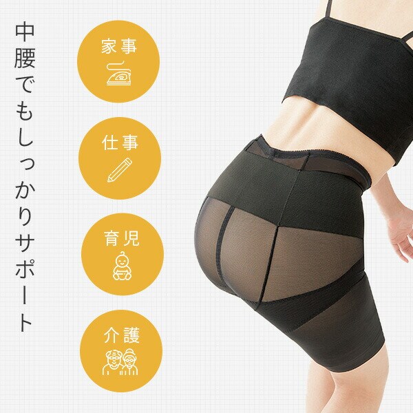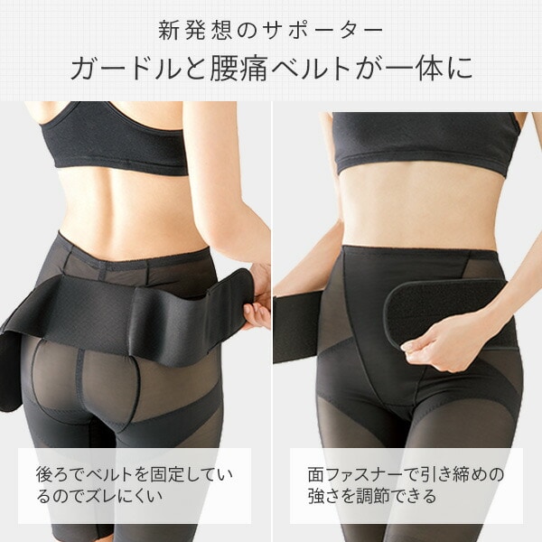 | 商品説明 | ●ガードルと腰痛ベルトが一体になった新発想のサポーター ●適応ヒップサイズ:(M-L)87-100cm、(L-LL)92-105cm、(LL-3L)97-110cm ●骨盤をしっかり固定でき安定させて、腰の痛みをサポート ●一体型だから激しく動いてもずり上がらない。ベルトとお腹の段差が目立たない ●面ファスナーで引き締めの強さを調節できる ●薄手のメッシュ素材だからムレにくく、裾はヘム仕様でアウターに響きにくい ●ヒップアップ・内腿引き締め機能もありシルエット美人に ●一枚履きOK ●面ファスナーのオス部分が折りたため、着脱時、衣類にくっつかない |
