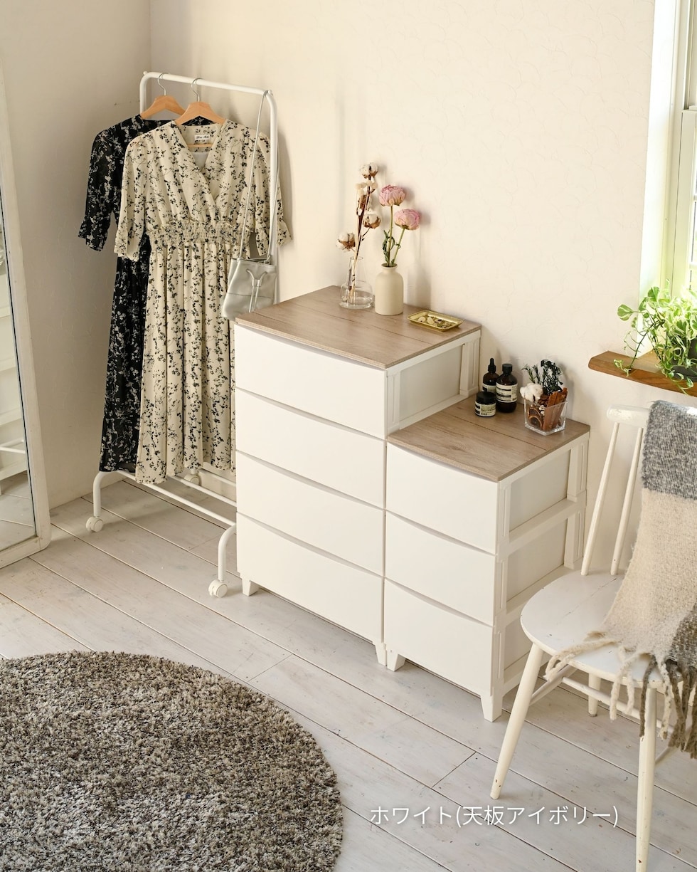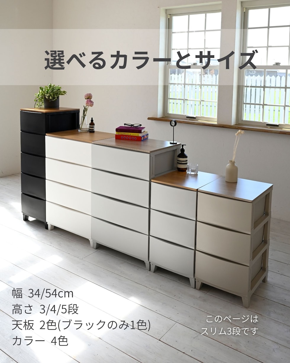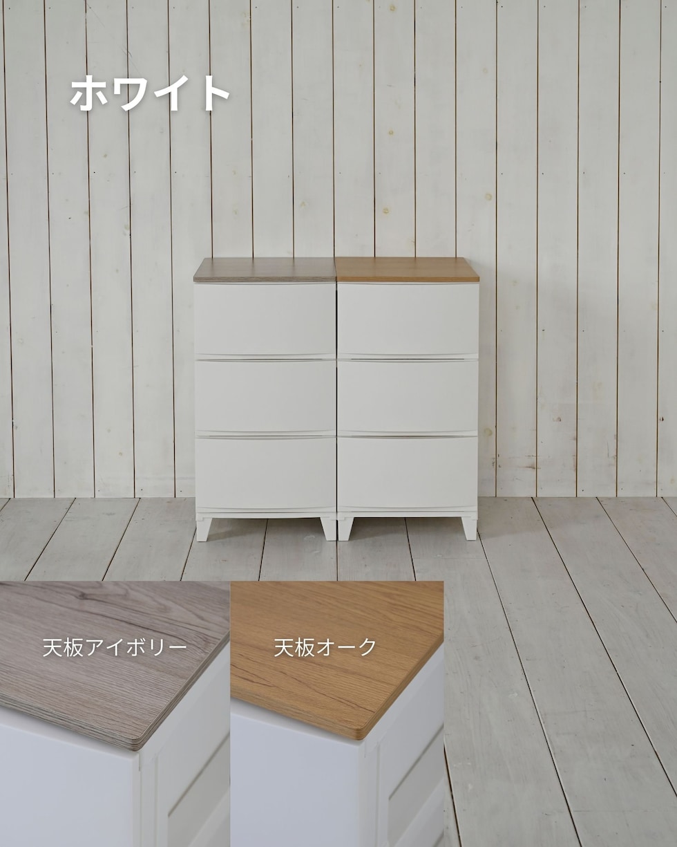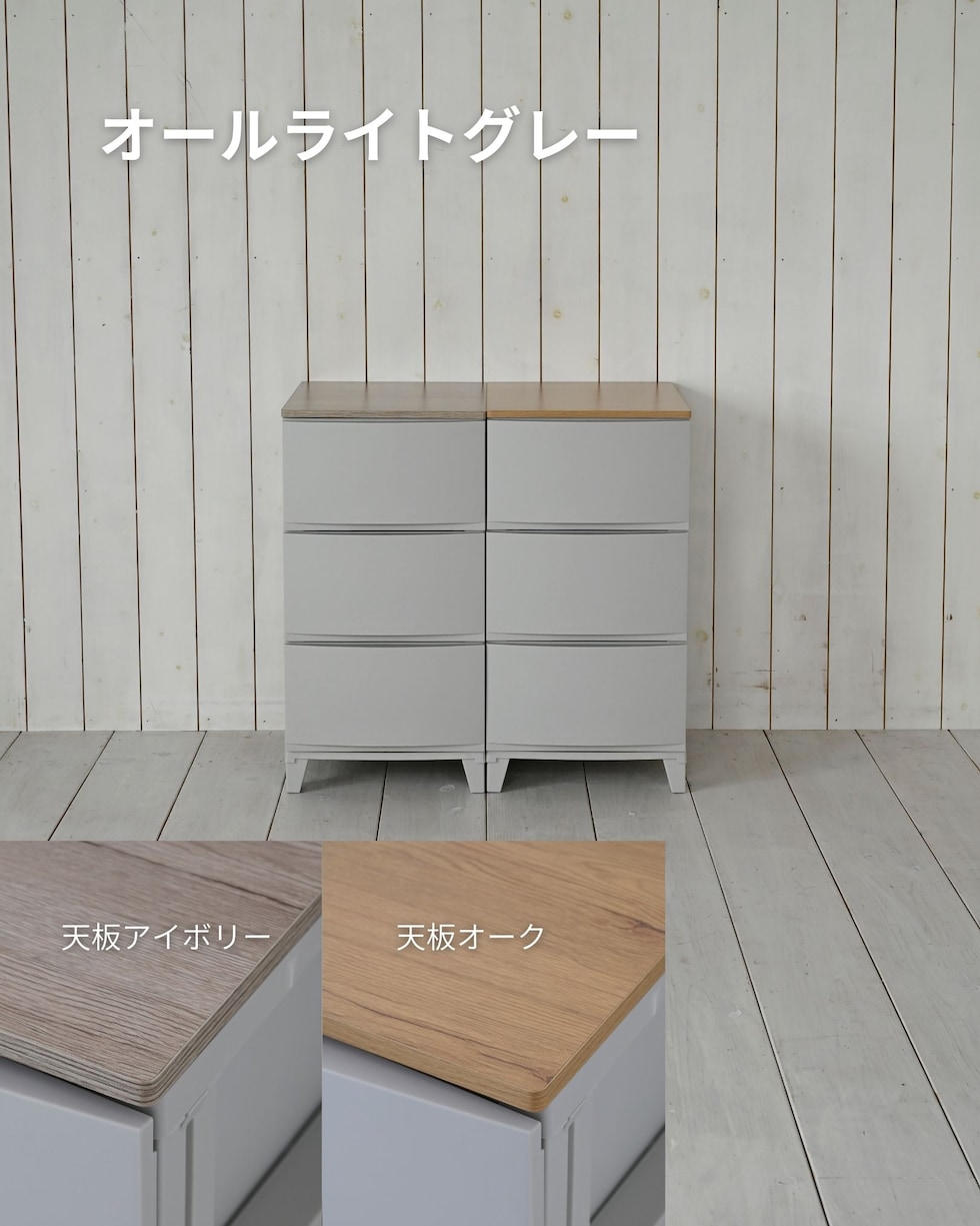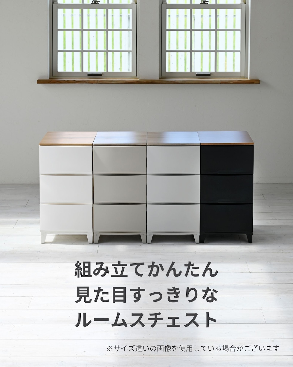 | 商品説明 | ●※2026年2月5日より、木天板付きタイプとしてリニューアルします。カラーもホワイト、グレージュ、ライトグレー、ブラックのシンプル系に変更しての販売となります。 ●中身を隠せる、すっきりデザインの収納チェスト「ルームス」シリーズ ●天板強度を改善できて色も選べる、木製天板付き ●「すーっと引いて、スキっと閉まる」、引き出しは軽くて出し入れラクラク ●マットな質感の「シェード」カラー ●工具不要で組み立てかんたん ●脚部裏面用の滑り止め合成ゴムシート付属 ●脚の高さ: 約5.5cm ●引出し内寸: 幅26 奥行36.2 深さ16.5cm ●1段あたりの収納目安: セーター3枚、Yシャツ5枚、バスタオル3枚 ●耐荷重: 天板 約10kg(均等に荷重をかけた場合)、引出し1段あたり 約2kg ※下段から重いものを入れてご使用ください。 ●天板耐熱温度: 約80℃ ※複数台並べた際、天板同士は隙間や段差が生じる場合がございます。水平にならない点、予めご了承ください。 ※木製天板のみ中国製 |