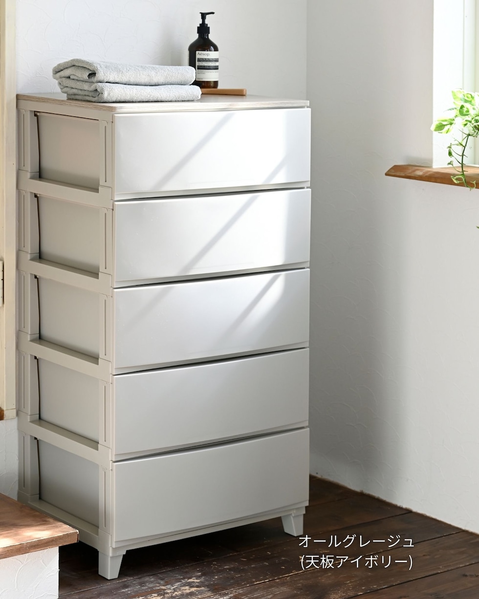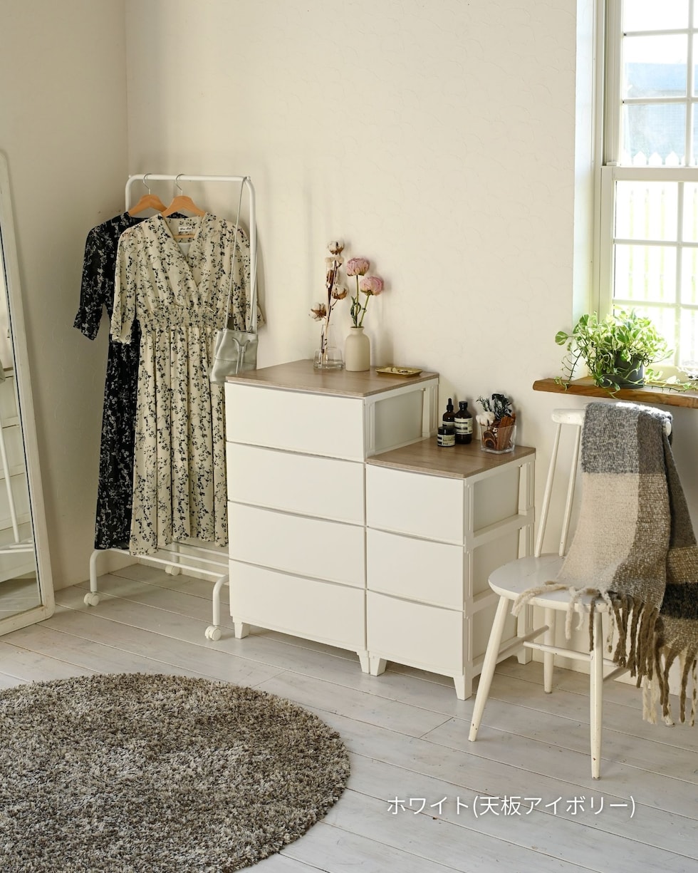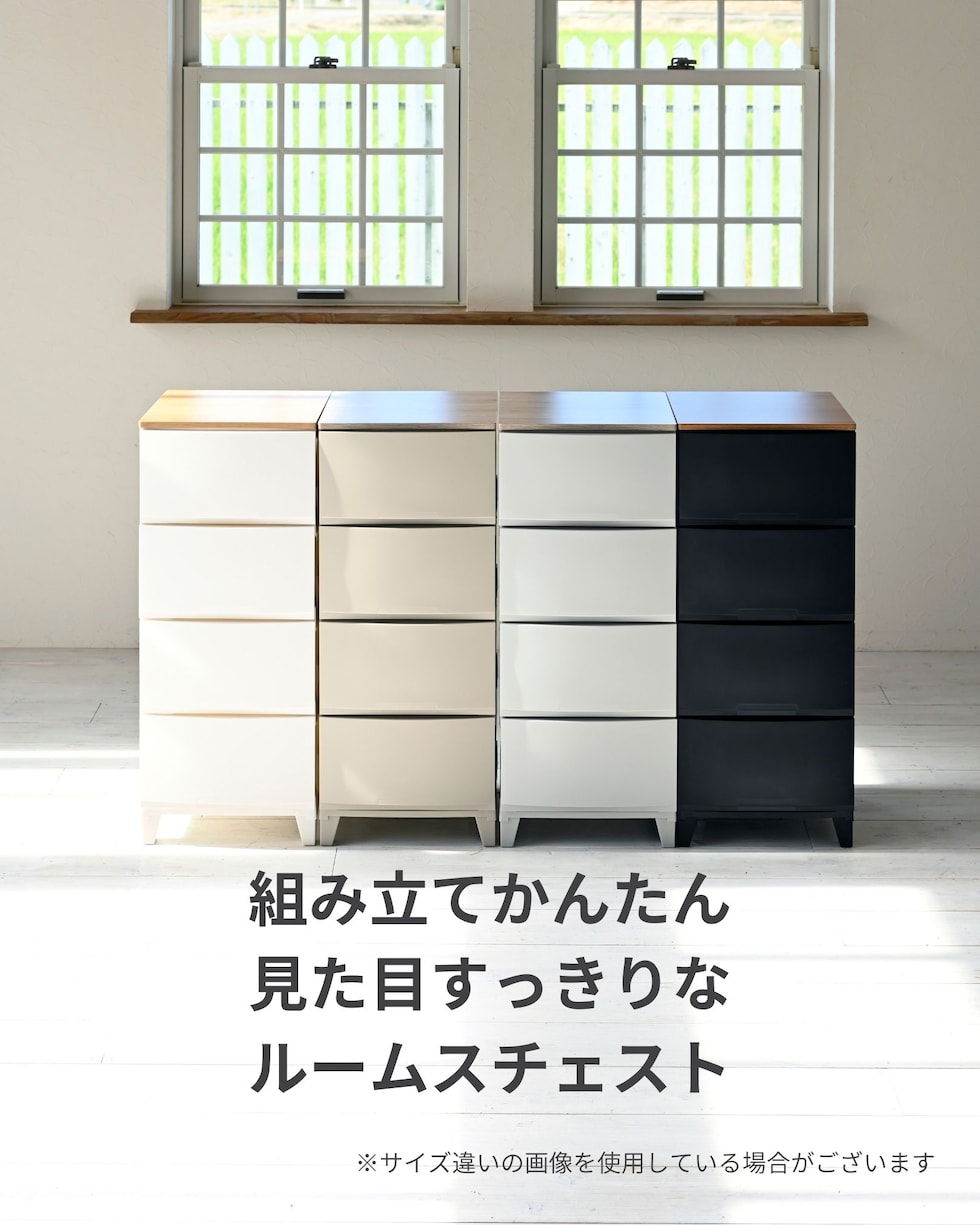 | 商品説明 | ●※2026年2月5日より、木天板付きタイプとしてリニューアルします。カラーもホワイト、グレージュ、ライトグレー、ブラックのシンプル系に変更しての販売となります。 ●中身を隠せる、すっきりデザインの収納チェスト「ルームス」シリーズ ●天板強度を改善できて色も選べる、木製天板付き ●「すーっと引いて、スキっと閉まる」、引き出しは軽くて出し入れラクラク ●マットな質感の「シェード」カラー ●工具不要で組み立てかんたん ●脚部裏面用の滑り止め合成ゴムシート付属 ●脚の高さ: 約5.5cm ●引出し内寸: 幅26 奥行36.2 深さ16.5cm ●1段あたりの収納目安: セーター3枚、Yシャツ5枚、バスタオル3枚 ●耐荷重: 天板 約10kg(均等に荷重をかけた場合)、引出し1段あたり 約2kg ※下段から重いものを入れてご使用ください。 ●天板耐熱温度: 約80℃ ※複数台並べた際、天板同士は隙間や段差が生じる場合がございます。水平にならない点、予めご了承ください。 ※木製天板のみ中国製 |