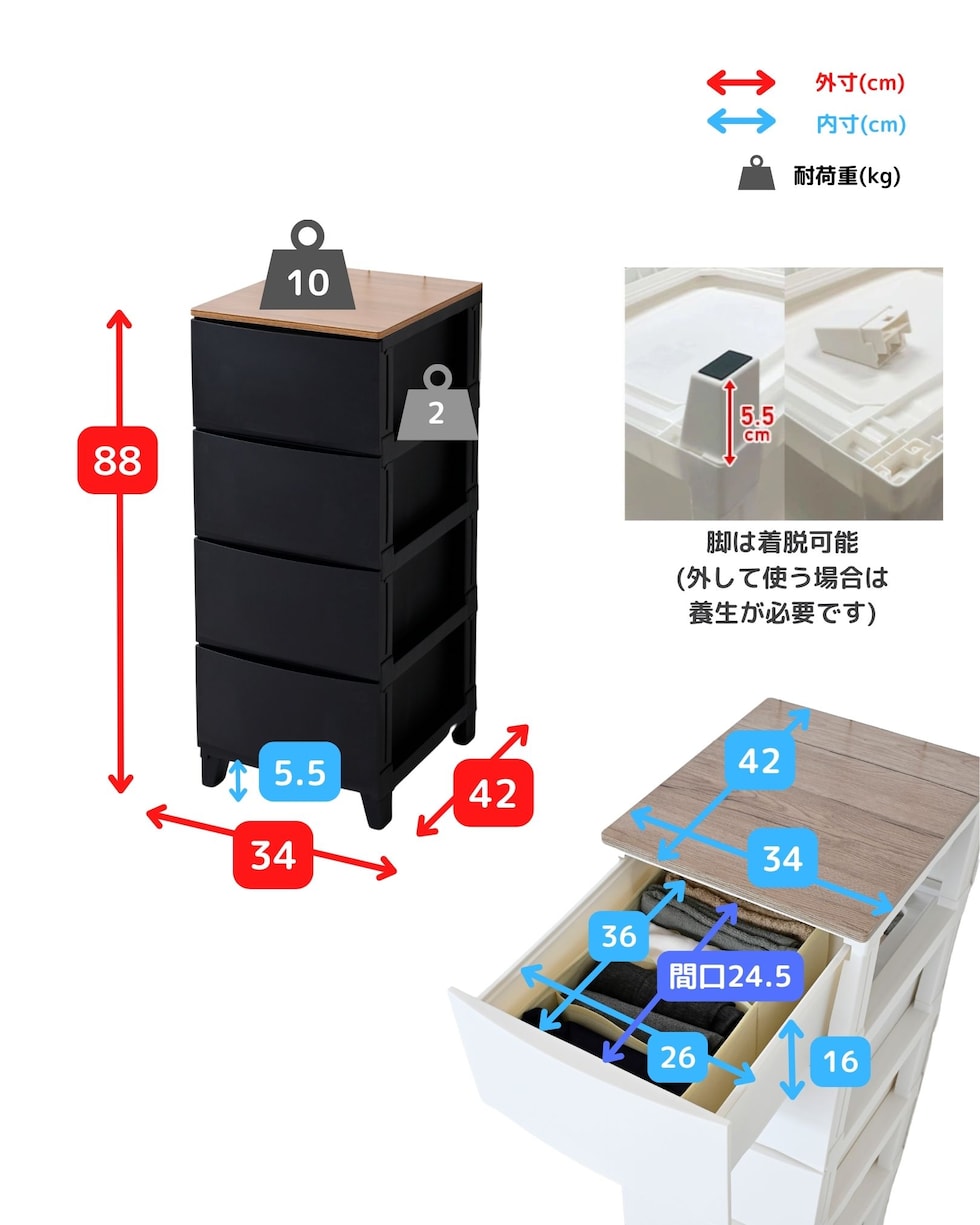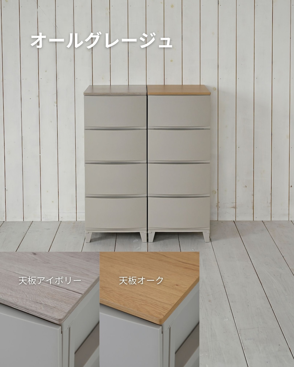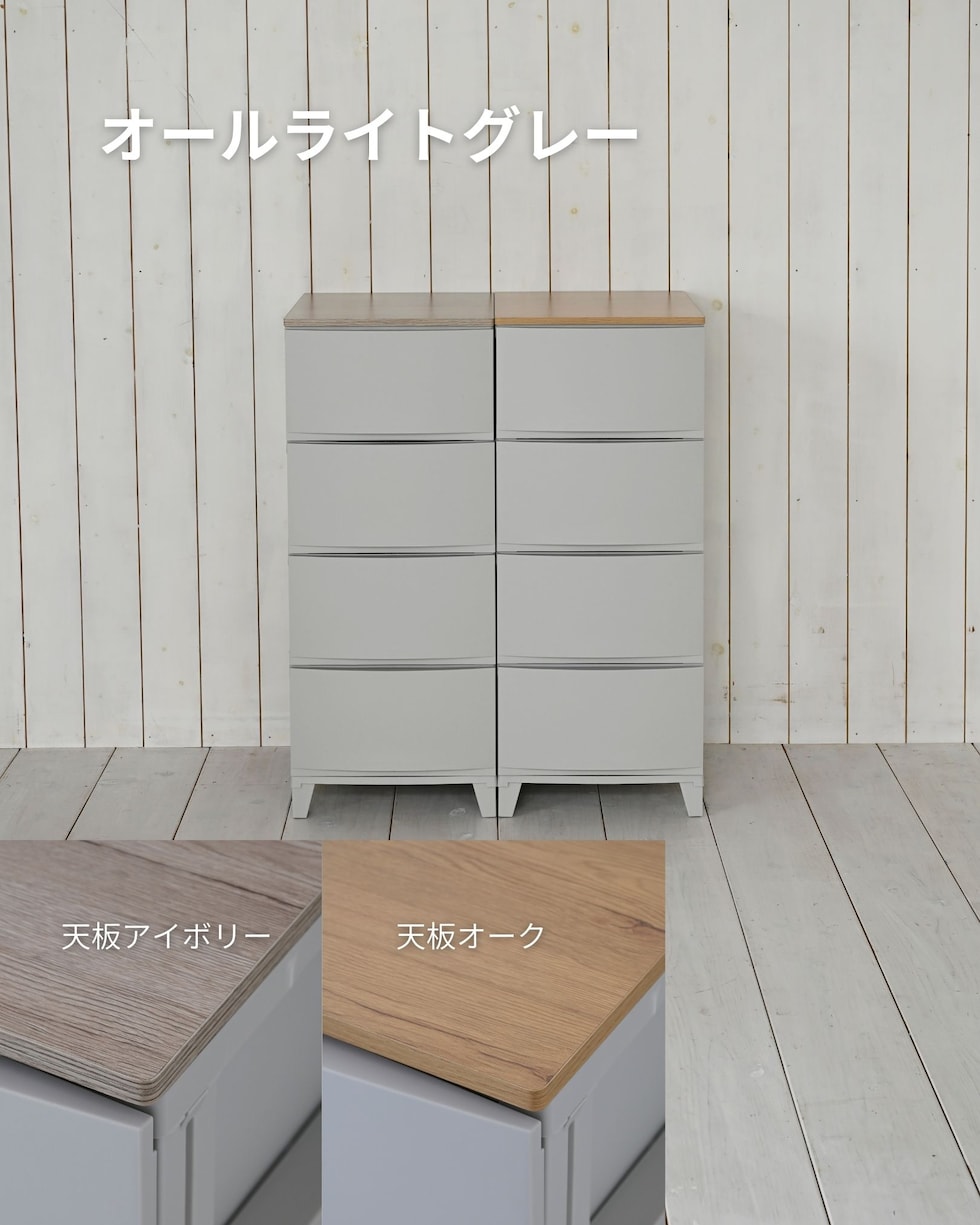 | 商品説明 | ●※2026年2月5日より、木天板付きタイプとしてリニューアルします。カラーもホワイト、グレージュ、ライトグレー、ブラックのシンプル系に変更しての販売となります。 ●中身を隠せる、すっきりデザインの収納チェスト「ルームス」シリーズ ●天板強度を改善できて色も選べる、木製天板付き ●「すーっと引いて、スキっと閉まる」、引き出しは軽くて出し入れラクラク ●マットな質感の「シェード」カラー ●工具不要で組み立てかんたん ●脚部裏面用の滑り止め合成ゴムシート付属 ●脚の高さ: 約5.5cm ●引出し内寸: 幅26 奥行36.2 深さ16.5cm ●1段あたりの収納目安: セーター3枚、Yシャツ5枚、バスタオル3枚 ●耐荷重: 天板 約10kg(均等に荷重をかけた場合)、引出し1段あたり 約2kg ※下段から重いものを入れてご使用ください。 ●天板耐熱温度: 約80℃ ※複数台並べた際、天板同士は隙間や段差が生じる場合がございます。水平にならない点、予めご了承ください。 ※木製天板のみ中国製 |
