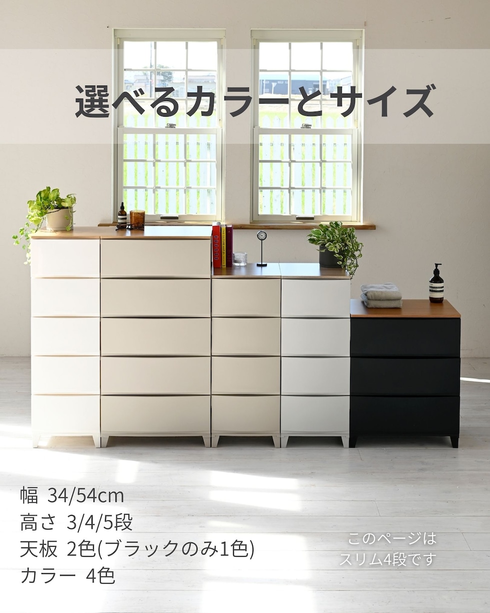 木製 天板付き ルームス チェスト 4段 スリム 幅34 奥行42 高さ 88cm ランドリーチェスト 衣装ケース 引き出し タンス プラスチック 洗面所 収納 寝室 子供部屋 クローゼット シンプル 日本製 サンカ SANKA 【送料無料】