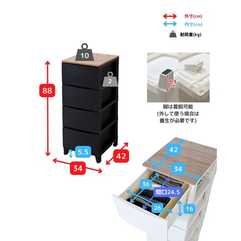 | 材質 | 天板: MDF(メラミン樹脂)、本体: ポリプロピレン |