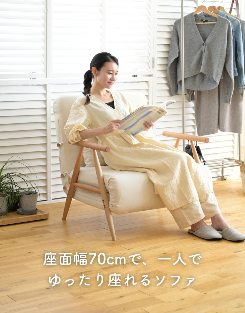 | 商品説明 | ●工具不要(六角レンチ、スパナ付属) ※大きく重い商品です。玄関先までのお届けとなります。搬入や設置にはお二人以上がおすすめです。 ※2024年12月3日よりリニューアルしての販売です。・肘を木製に変更、サイズをSSSへ見直し、カバーを外して洗濯可能に変更 ●ゆったり一人掛けのファブリックソファ ●前に引き出せば、カウチソファやセミシングルショートのデイベッドに変身 ●座部・背部は全面クッション張り ●座面カバーは外して洗濯機で丸洗い可能(要ネット使用+ファスナーは閉じて洗濯してください) ●肘掛は、丸みもあってあたたかみのある木製タイプ ●荷重の目安: 静止約90kg 【ソファ時】 ●座面サイズ:幅70 奥行55cm ●座面高さ:36cm ●背もたれ長さ:50cm ●肘掛サイズ:長さ44 太さ約3.3cm ●アーム高さ(床から):53.5cm ●付属クッション:55×35cm 【ベッド時】 ●床面サイズ:幅70 長さ181cm ●床面高さ; 24cm ●ベッド時は背もたれ14段階リクライニング式(水平時含む) ●ベッド時背もたれ長さ:60cm ●床面下高さ: 13.5cm |