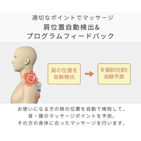 | 商品説明 | ●医療機器認証番号: 27B2X00082 ●定格電圧:AC100V(50/60Hz) ●消費電力:101W(待機電力:6W) ●定格時間:20分 ●オートタイマー:約15分 ●リモコン一つで簡単操作 ●電気代の目安:約47円/月(1日約30分 毎日使用した場合) ※電気料金目安単価 31円/kWh(税込)で算出 ●メカ(もみ玉)マッサージ速さ調節範囲:もみ 約19回/分 たたき 約290回/分(遅) 約390回/分(速) ●メカ(もみ玉)マッサージ速さ調節範囲<上下移動>:約1.18cm/秒 ●メカ(もみ玉)マッサージ強さ調節範囲:肩:5段階調節 背:2段階調節 腰:5段階調節 ●エアーマッサージ強さ調節範囲:2段階調節 ●肩位置調節:7段階調節 ●リクライニング角度:約118-約169度 ●エアーマッサージ空気圧:80kPa以下 ●メーカー保証:1年 ※注意事項・ご使用前に「取扱説明書」をよくお読みのうえ、正しくお使いください 次の人は、使用しないでください。身体に異常が起こる場合があります。(ペースメーカなどの電磁障害の影響を受けやすい体内植込み型医用電気機器を使用している人。悪性しゅよう(腫瘍)のある人。心臓に障害のある人。妊娠中、または出産直後の人。糖尿病などによる高度の抹消循環障害による知覚障害のある人。皮膚に創傷のある人。安静を必要とする人。体温38℃以上(有熱期)の人。骨粗しょう(鬆)症の人。せきつい(脊椎)骨折の人。急性[とう(疼)痛性]疾患の人。背骨(脊椎)に異常のある方、または背骨が左右に曲がっている人。捻挫、肉離れなど炎症性の人。椎間板ヘルニア症の人。腱鞘炎の人。温度感覚喪失が認められる人。その他、身体に特に異常を感じているときや、医療機関で治療中の人。お子様だけで使わせたり、自分で意思表示できない人には使用させないでください。また幼児を近づけないでください ※2025年11月よりTR-40へ型番変更しています |