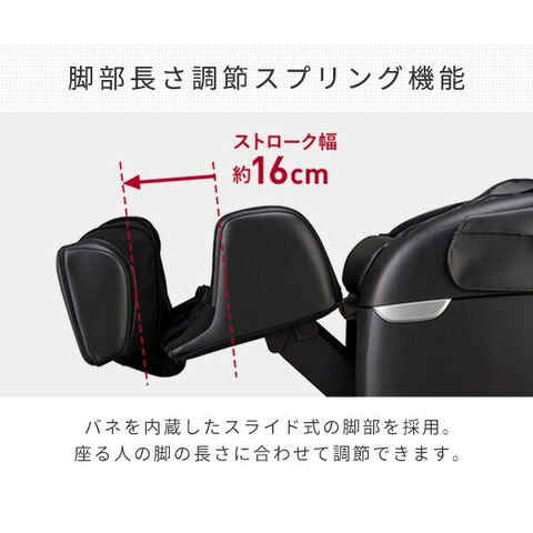 | 本体サイズ | 通常時:幅69×奥行120×高さ106cm(脚部収納時) リクライニング時:幅69×奥行185×高さ60cm(脚部最大使用時) 重量48kg |