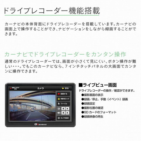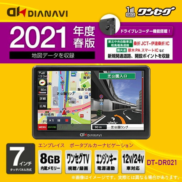 カーナビ 7インチ ワンセグカーナビ ポータブルナビ ドラレコ搭載 DT-DR021 ブラック ワンセグ 2021年度地図搭載 住友電工システムソリューション社製 12V/24V車対応 ドラレコ ドライブレコーダー DIANAVI ディアナビ 【送料無料】