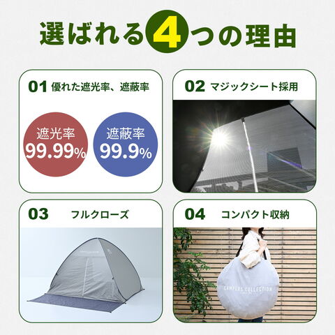 YAMAZEN ヤマゼン 山善 通販 アウトドア キャンプ用品 テント ワンタッチテント 日よけテント ポップアップテント ワンタッチサンシェード ビーチパラソル ビーチテント 海水浴 プール おすすめ ブラックコーティング 遮光 遮熱 運動会 フェス 公園 1人 2人 3人 4人 かわいい 遮熱 おしゃれ マジックシート T4P31 |