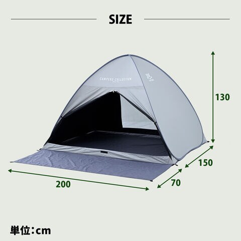 | 山善 YAMAZEN キャンパーズコレクション 中からは見えて外からは見えにくい シースルーサンシェード ポップアップテント ワンタッチテント フルクローズ ブラックコーティング SBOS-6UV(GY) |