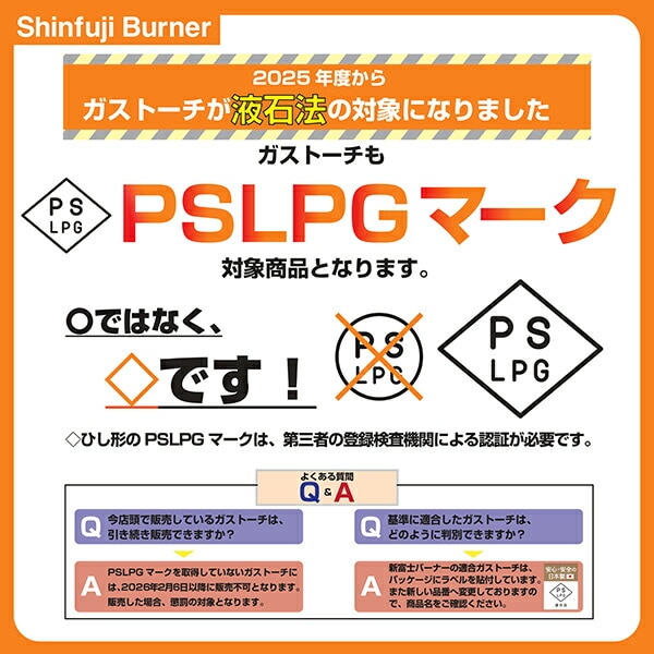 | PSマーク種類 | PSLPG(ひし形):携帯液化石油ガス用バーナー |