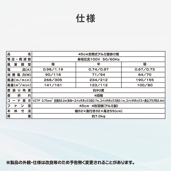 | ナカトミ NAKATOMI 45cmアルミ壁掛け扇(全閉式) CF-45W |
