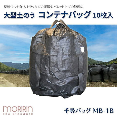 フレコンバック 10枚入 直径110×高さ110cm 耐候年数1年 耐荷重1t 丸型 排出口無し 反転ベルト有り ブラック MB-1B コンテナバッグ 千尋バッグ 土木 輸送 産廃用 モリリン 【送料無料】