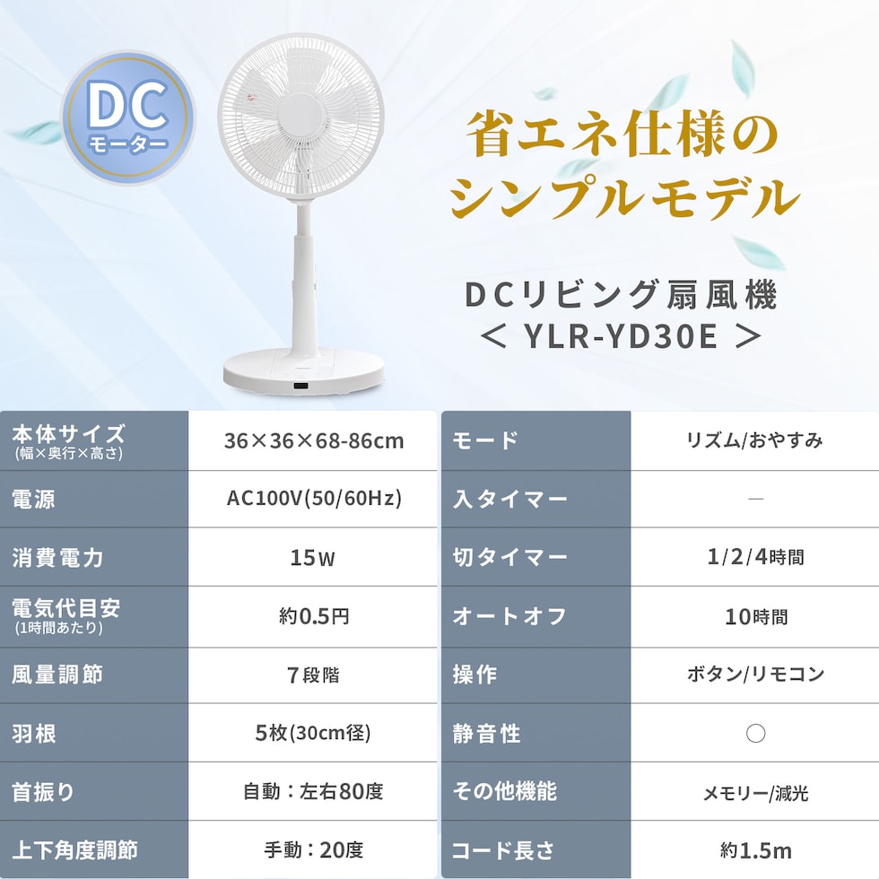 扇風機 DCモーター 30cm 風量7段階 リビング扇風機 dc扇風機 静音 リモコン 左右首振り 切タイマー YLR-YD30E DCリビング扇風機 首ふり 換気 熱中症対策 省エネ 節電 おしゃれ シンプル 山善 YAMAZEN 【送料無料】