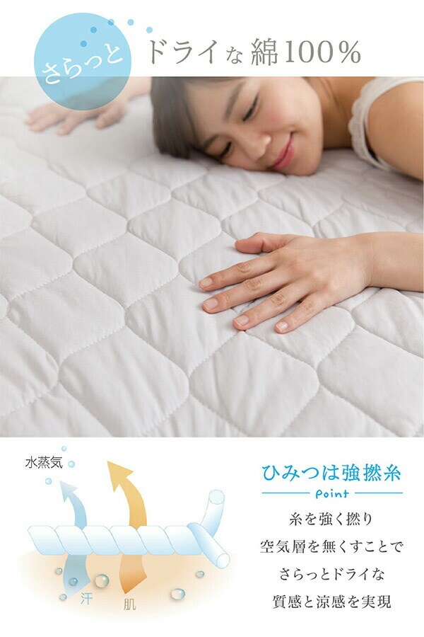 さらっと快適 天然素材 (綿100%) 涼感ドライコットン 抗ウィルス・抗菌機能付きの敷きパッド ダブル 21260302 敷きパッド 敷き布団 マットレス ベッド ドライ 涼感 綿 ナイスデイ NICEDAY 【送料無料】